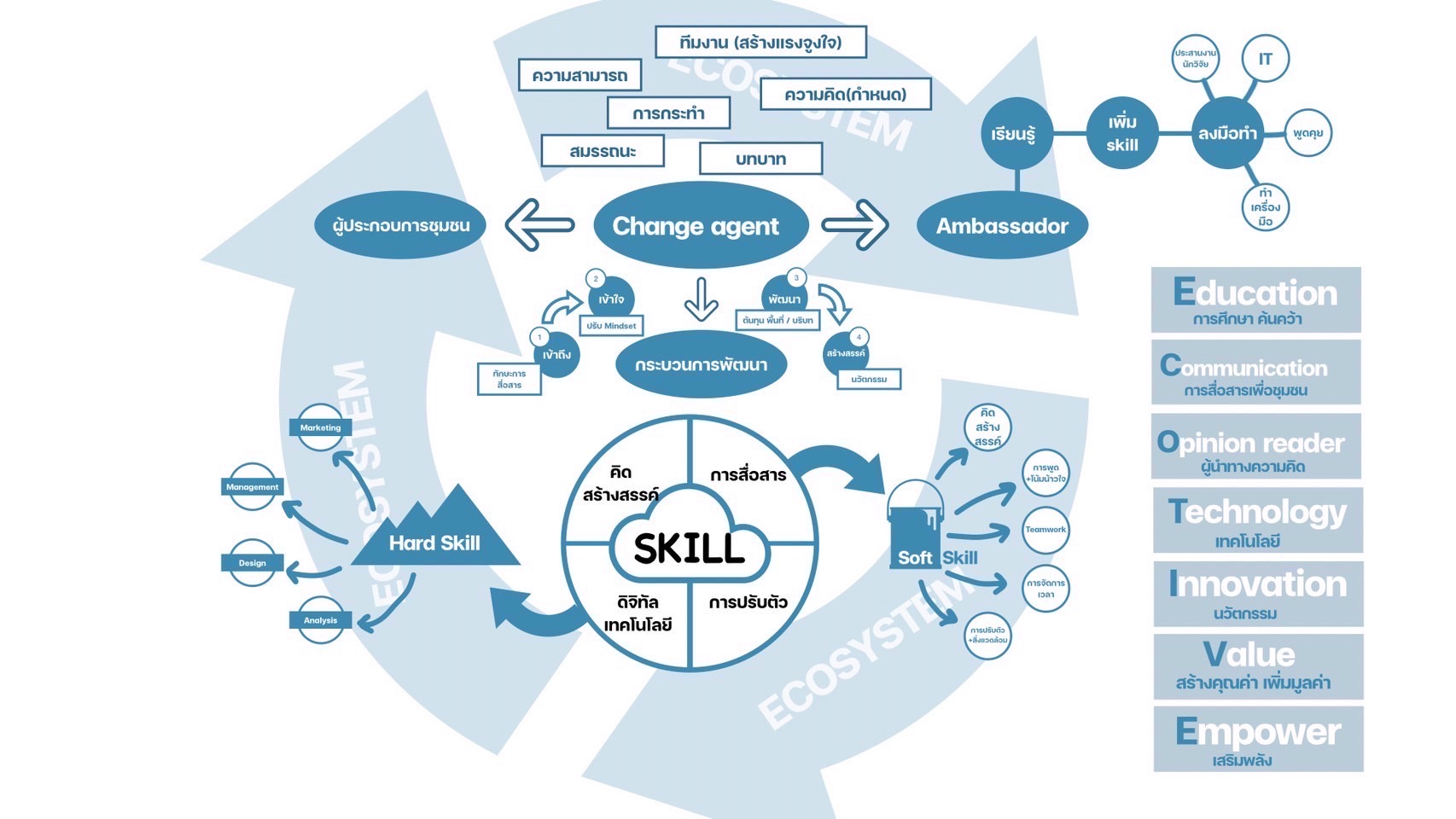โดยกระบวนการของ Ecotive สู่การสร้าง ecosystem ผ่านการสร้าง Change Agent ด้วยกระบวนการ ดังนี้